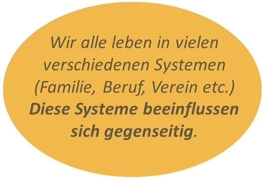 System - Alles gehört zusammen: Ein System besteht aus vielen Teilen, die zusammenpassen & sich gegenseitig beeinflussen, z.B. Familie, Schule, Unternehmen. Alle Dinge im System sind miteinander verbunden. Sie beeinflussen sich gegenseitig.